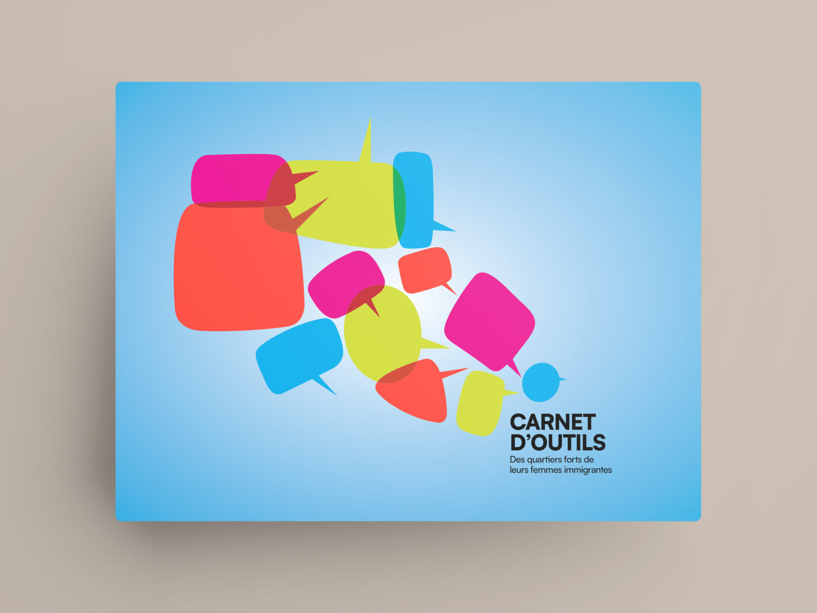 Las de ces nombreux documents à pages blanches à leur disposition, le désir était de se démarquer et d’attirer l’attention pour que les intervenants aient envie de lire ce carnet. Une direction artistique riche en couleurs déclinées du logo existant du projet fut donc créée.