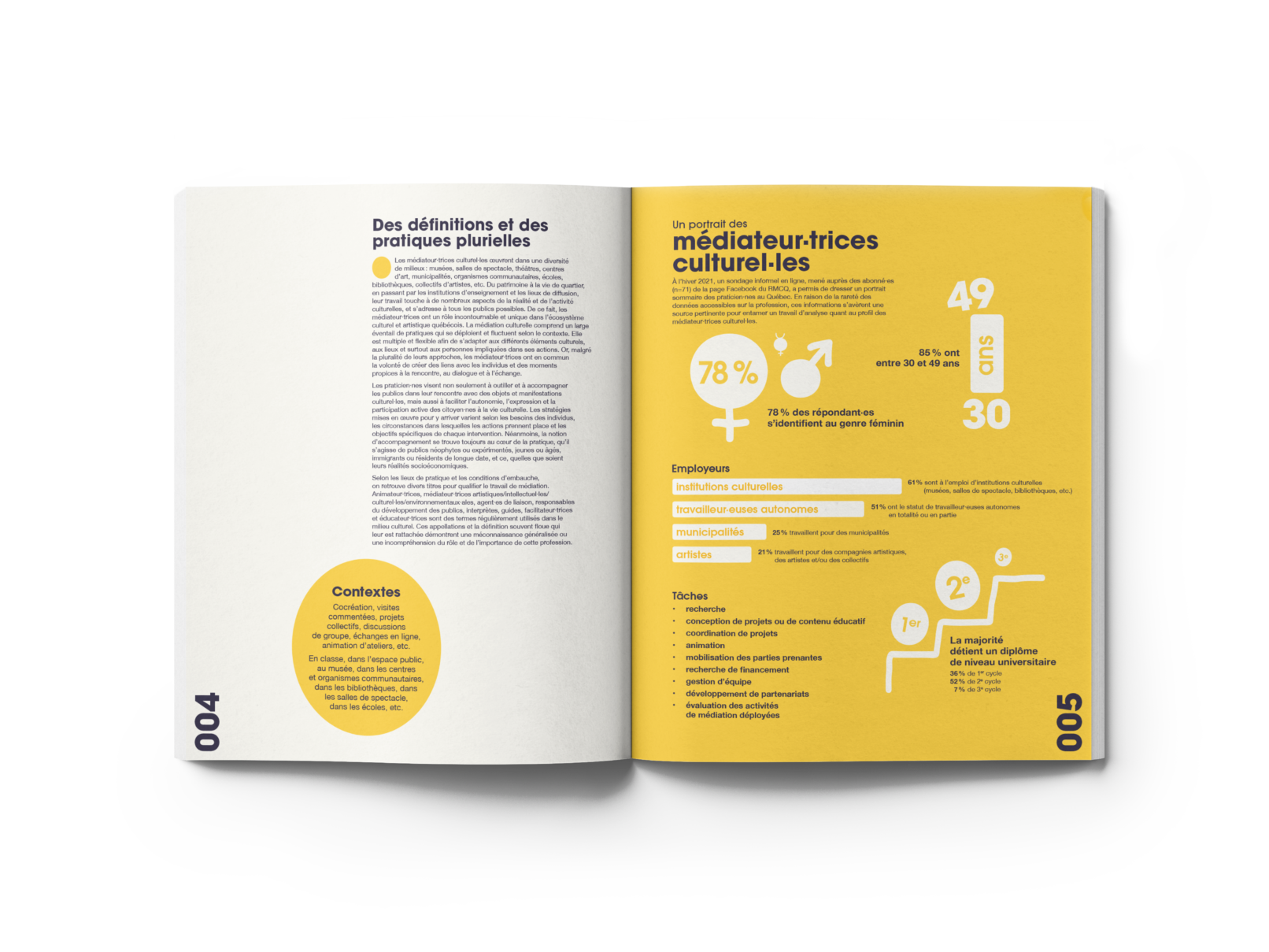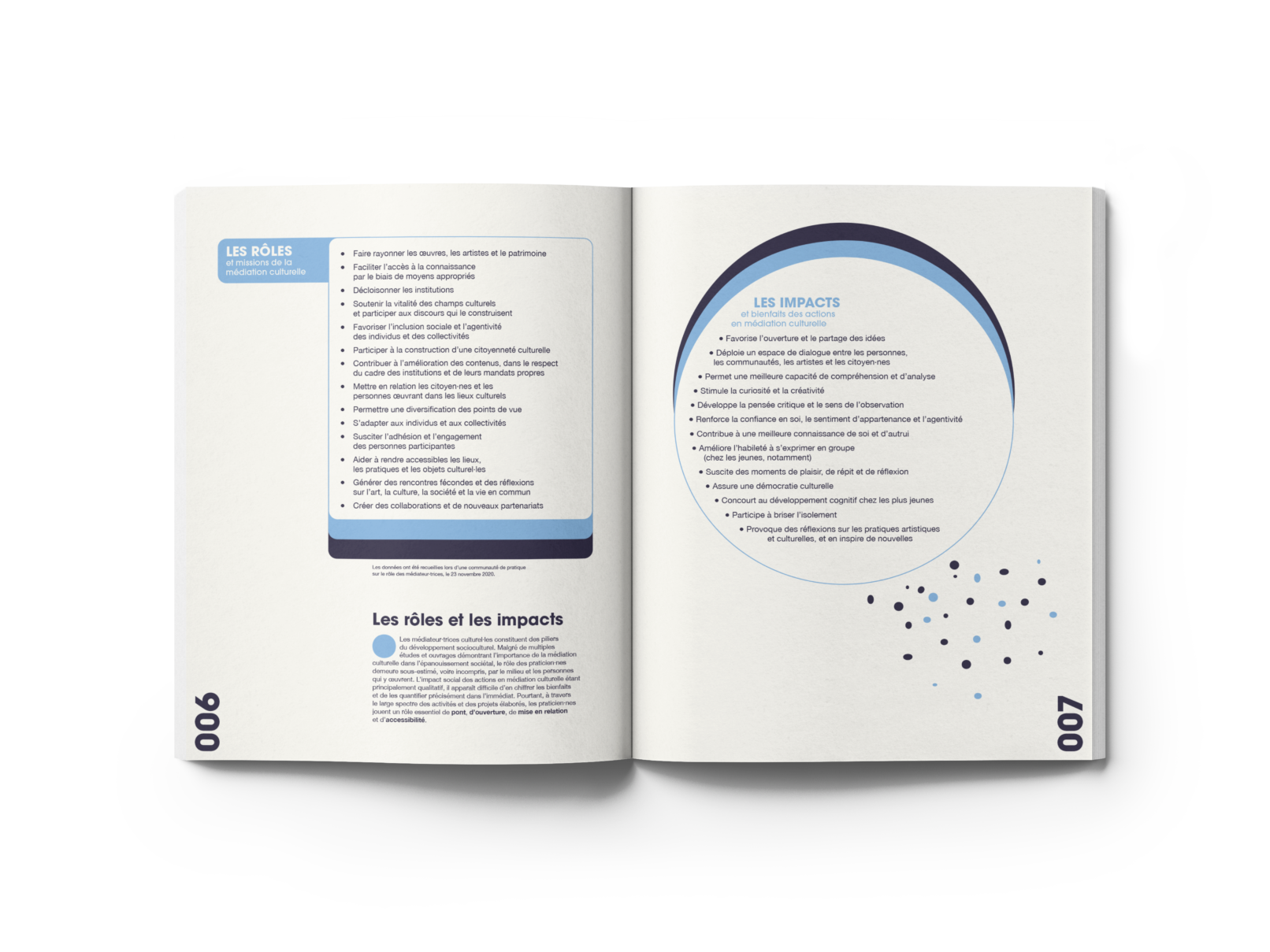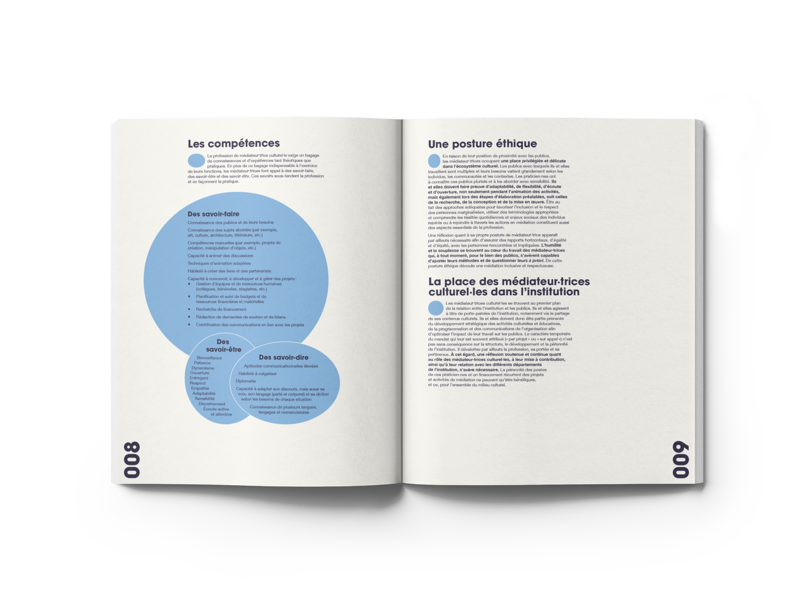 Ce qui donne comme résultat un document avec un air sérieux mais pas ennuyant. Le niveau d’écriture est avancé mais facile à lire. La Charte des médiatrices et médiateurs culturel·les du Québec constate des lacunes et revendique un changement mais de façon bienveillante et constructive.