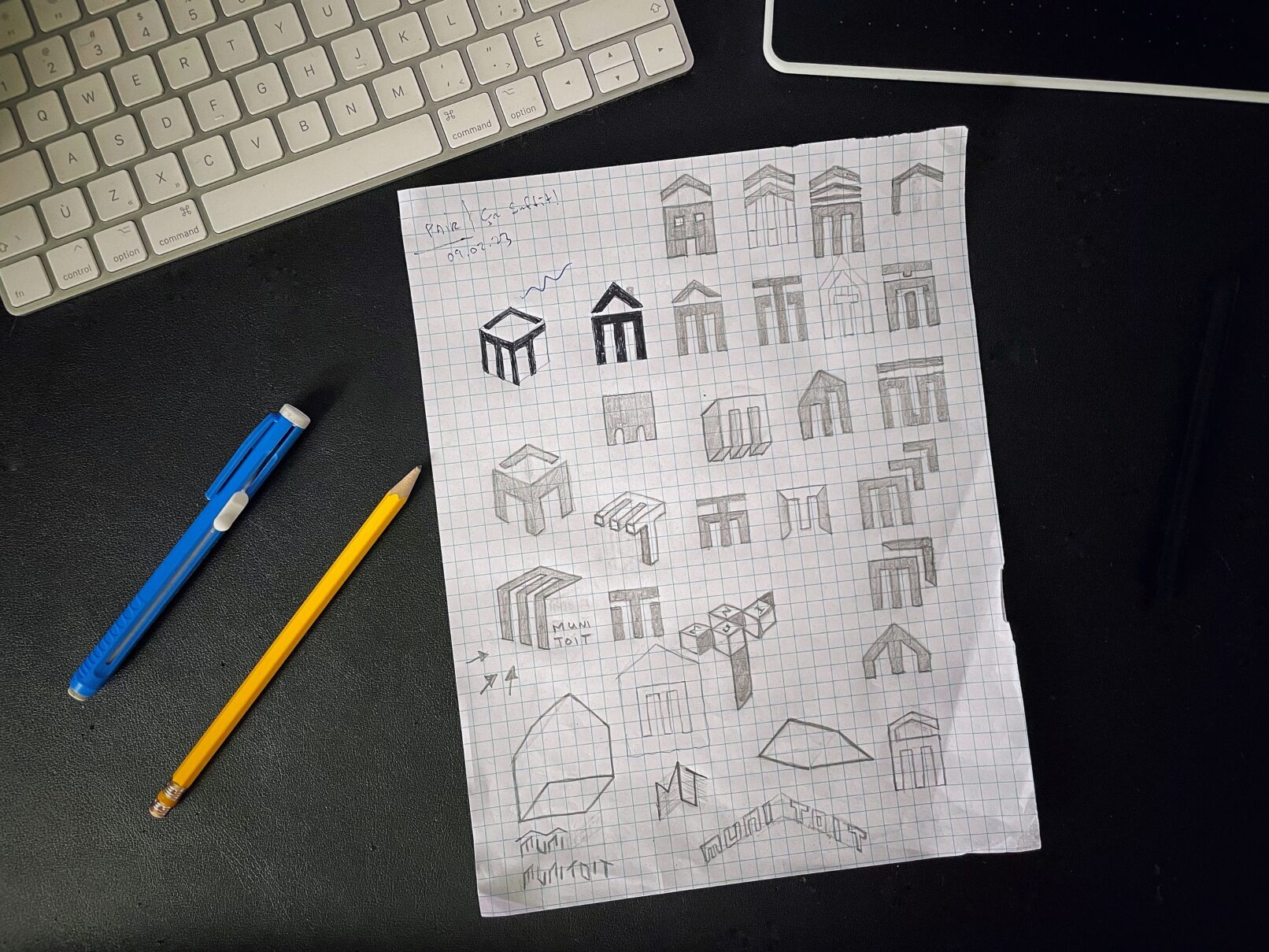 C’est donc en collaborant avec Pair que j’ai développé cette identité visuelle en déclinant le logotype de l’Espace MUNI. À partir de son «M», placé en vue isométrique, étiré et plié, le symbole de MUNI-toit intègre brillamment l’architecture en laissant MUNI personnifier un toit.