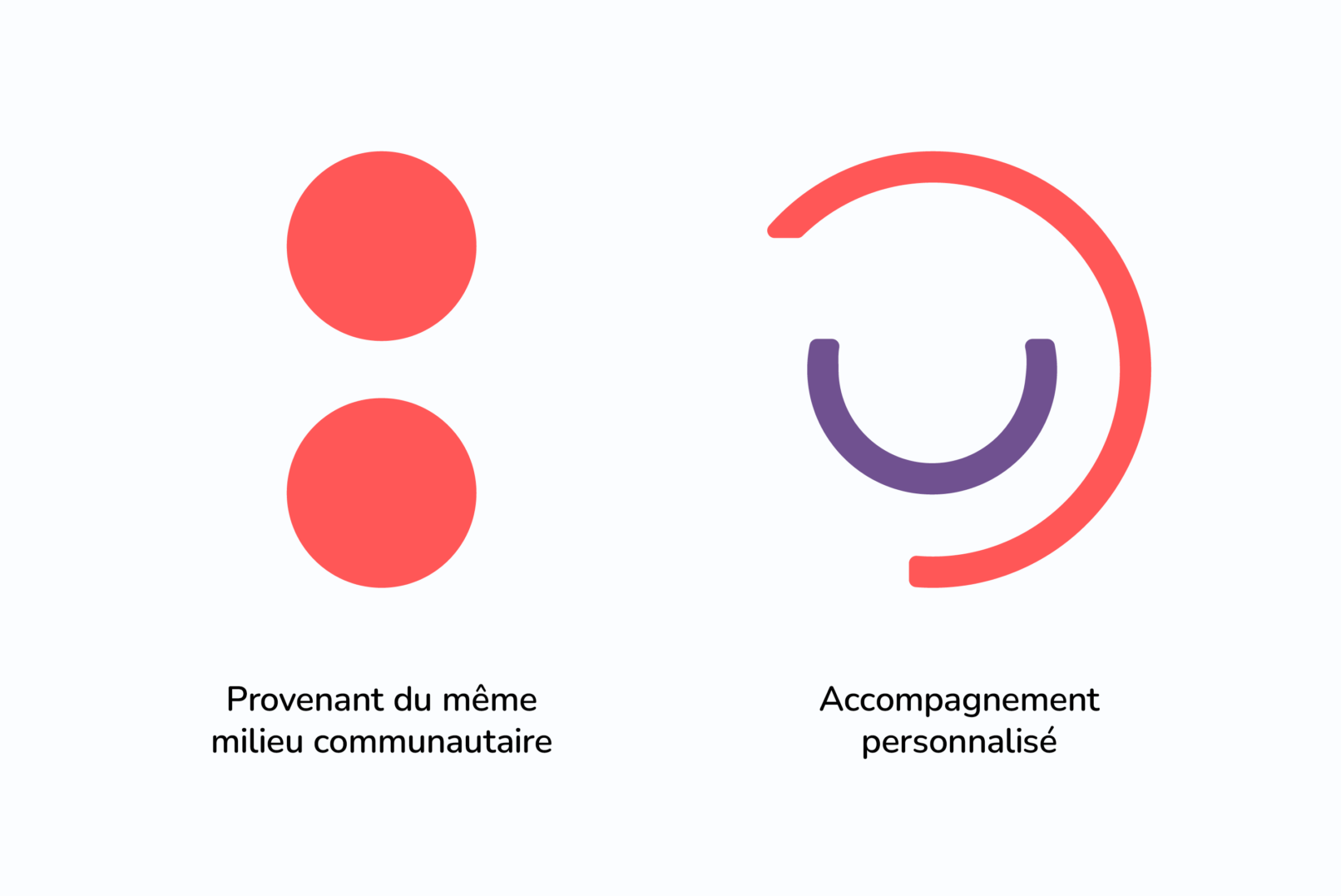 Avec un nom aussi excellent, l’opportunité est là pour renforcir la marque de façon créative. Peu importe la forme utilisée dans les visuels, elle sera doublée. 2 éléments identiques soulignent que Pair est issu du même milieu communautaire que ceux.celles qu’il accompagne. 2 éléments de tailles ou de couleurs différentes représentent l’accompagnement personnalisé. La courbe, le cercle et les coins arrondis sont à privilégier mais ça va plus loin que ça. Il devrait se retrouver dans tous les gestes. Par exemple, lorsque l’on donne une carte d’affaire, celle-ci se déchire en 2: une à garder, une à donner!