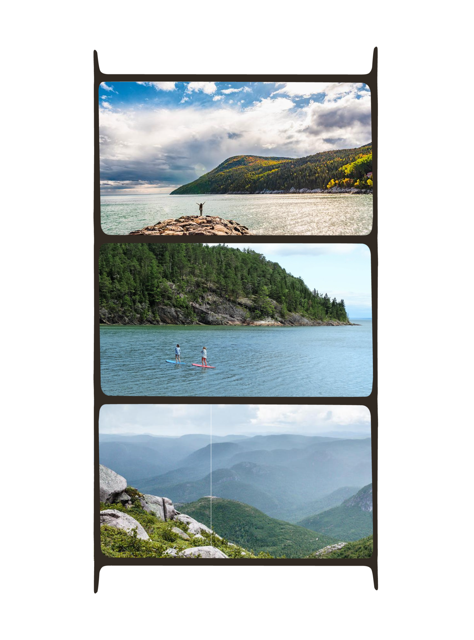 Le symbole est construit à partir de la lettre I couchée à l’horizontal. Il offre une forme semblable à un lit ainsi que le symbole de pause en musique qui signale au musicien qu’il doit se reposer un certain temps. Il est utilisé seul comme imagerie avec parcimonie pour maintenir un design minimaliste zen. Il peut également servir de cadre original pour les images de paysage environnant, qui rappelle les films négatifs en photographie analogue. On promet inconsciemment que les photos de vacances seront réussies et mémorables. La promesse n’est pas difficile à tenir avec la beauté indéniable que l’on connaît du fleuve.